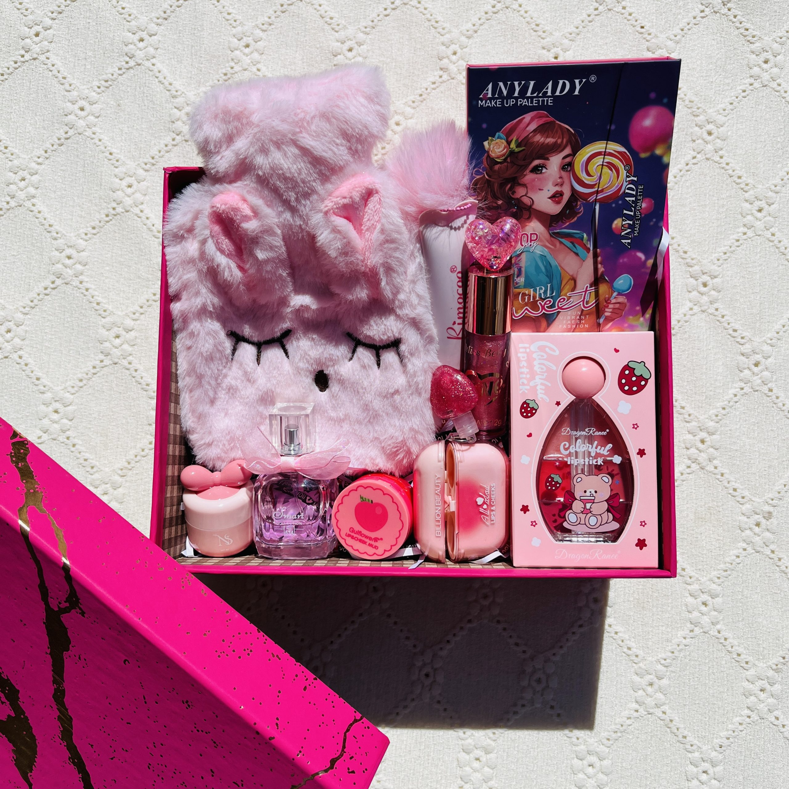 پک شامل:کیسه آب گرم،لیپ گلاس،لیپ اویل،پک لیپ گلاس،پالت همه کاره،رژگونه طبقاتی،رژ ایرپادی،رژ خمیری،عطر ۲۵ میل همراه باکس